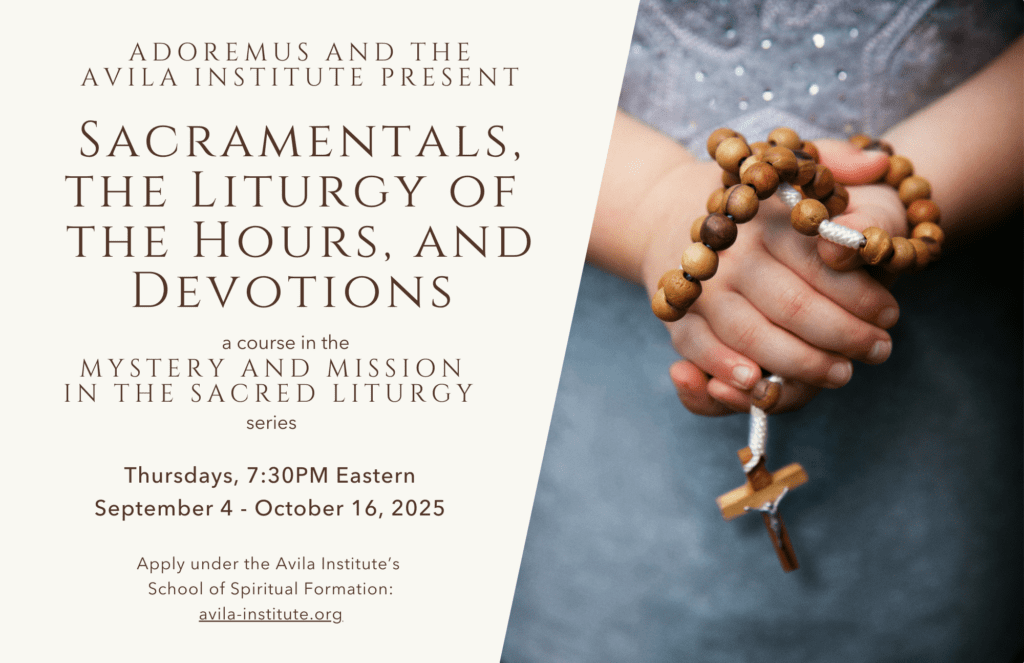 Adoremus joins the Avila Institute in offering “Mystery and Mission in the Sacred Liturgy,” a series of four introductory courses on liturgical prayer and the sacraments, and taught by Adoremus Director, Christopher Carstens.