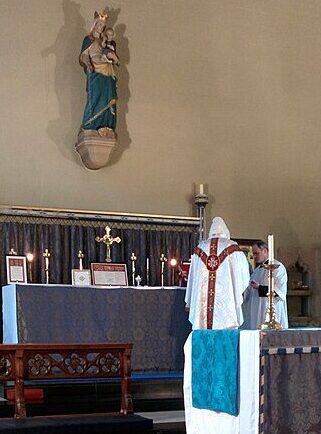 So, what are some of the additional differences between the Carmelite Rite and the Roman Rite? On certain particularly important feasts, the Introit is said three times, rather than once as in the Roman Rite. There is also an additional reading beyond the Epistle and the Gospel, read by an acolyte. Following the Pater noster, the choir sings Psalm 78(79) (Deus venerunt gentes (“O God, the heathen are come”)), praying for the Holy Land. Incidentally, the prayer Domine, non sum dignus (“Lord, I am not worthy”) was only introduced into the Carmelite Rite in 1568, several hundred years after the rite was developed.