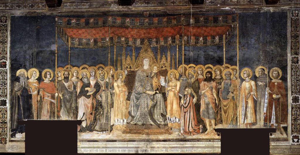 Image Source: AB/Wikimedia Commons. Maestà by Lippo Memmi, Sala di Dante, San Gimignano.